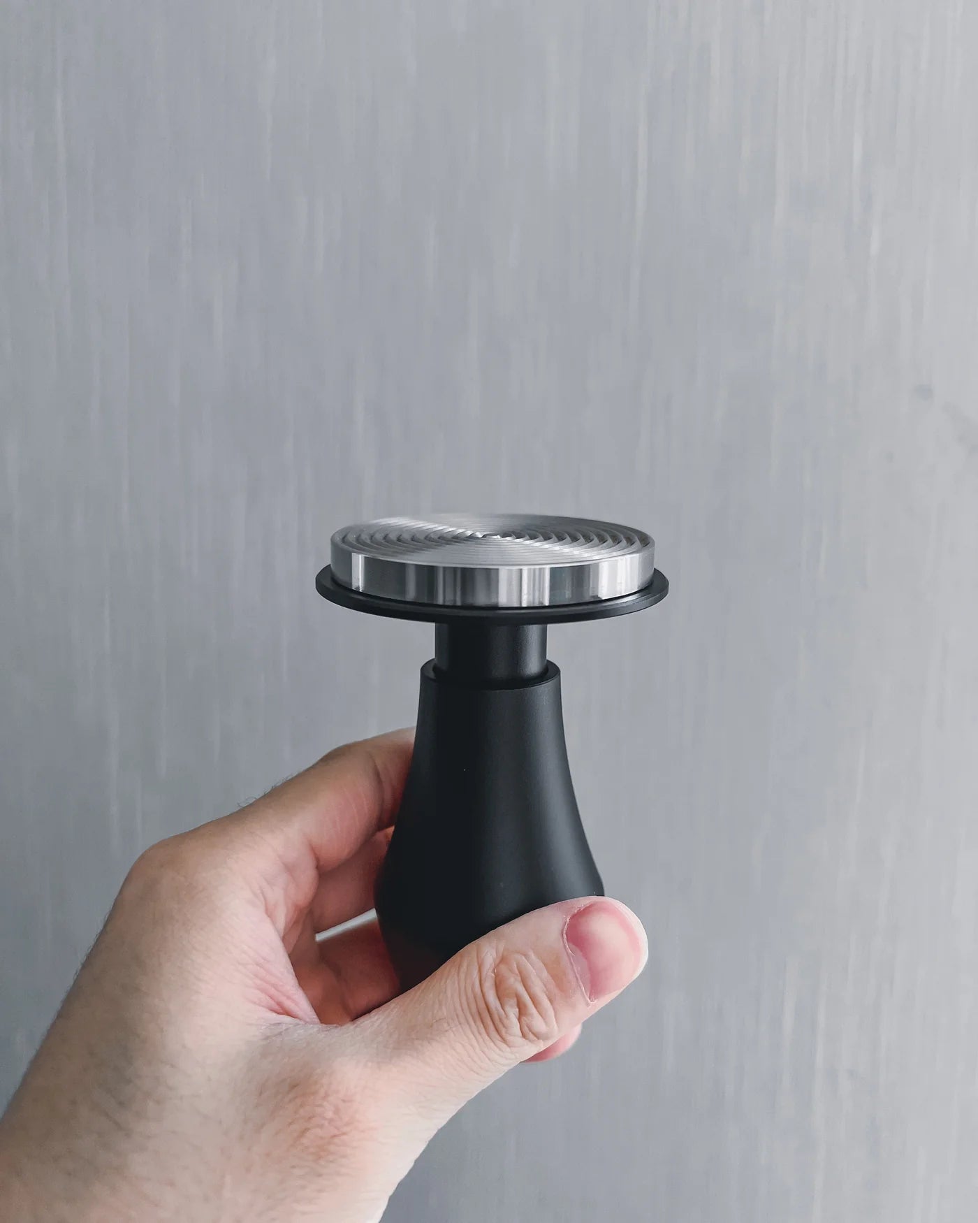 RIPPLE BASE - Created to minimize the risk of a doughnut extraction, the indentation on the coffee bed made by the ripple tamper allows controlled water channeling and even saturation of the grounds.